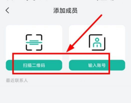 5、接着你可以通过扫描二维码或输入账号信息的方式来添加新的家庭成员。