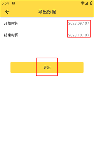 3、在“导出数据”页面上方,可以选择需要导出的数据时间范围,设置完成后,点击“导出”按钮即可开始导出。