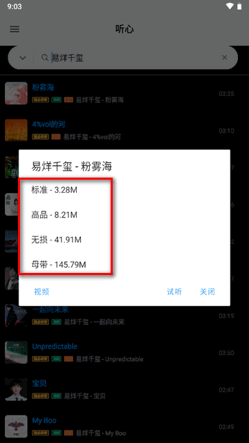3、支持标准、高频、无损、母带等多种音质选择,满足不同用户对音质的需求。