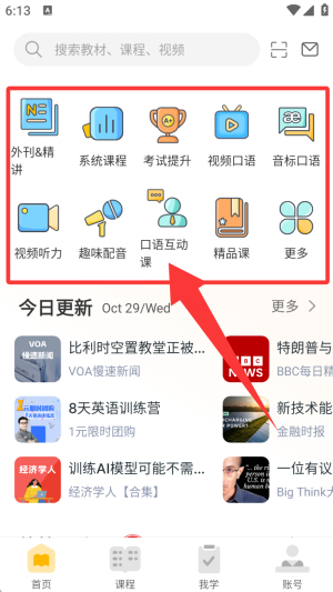 1、每天上线后,第一时间浏览各类分类内容,可以获取丰富的信息资源,为后续使用懒人英语听力软件提供便利。