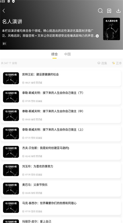 3、收录众多名人演讲原声音频,细心聆听,近距离体验声音魅力。