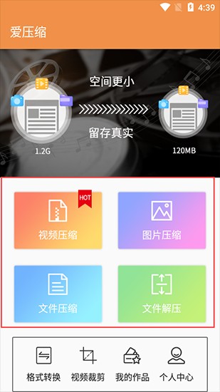 2、爱压缩免费版集成视频压缩、文件解压缩、图像压缩等实用功能,一站式满足用户需求。