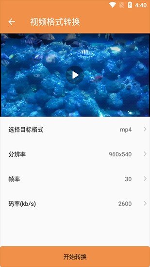 2、可以对视频的格式、分辨率、帧率和码率等参数进行设置。确认合适的参数后,点击“开始转换”执行操作。
