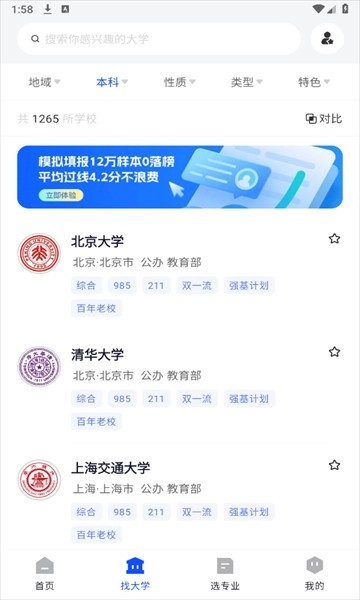 2、你既可以在应用内浏览各类大学相关内容,也能直接在搜索框中输入学校名称进行查找。