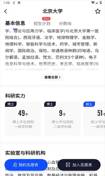 3、进入具体学校页面后,可以查看全面介绍,包括基本信息、历年分数线以及招生计划情况。