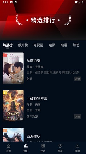 2、点击进入“排行”栏目,您可以查看各类流行的排行榜单。