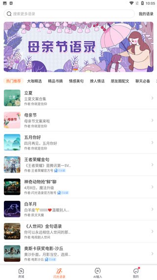 4、闪光语录板块包含大量优质句子,可以参考用作日常文案。