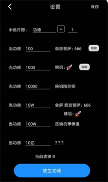 3、支持设置多种敲木鱼的使用场景,点击放生功德即可进行相关操作。