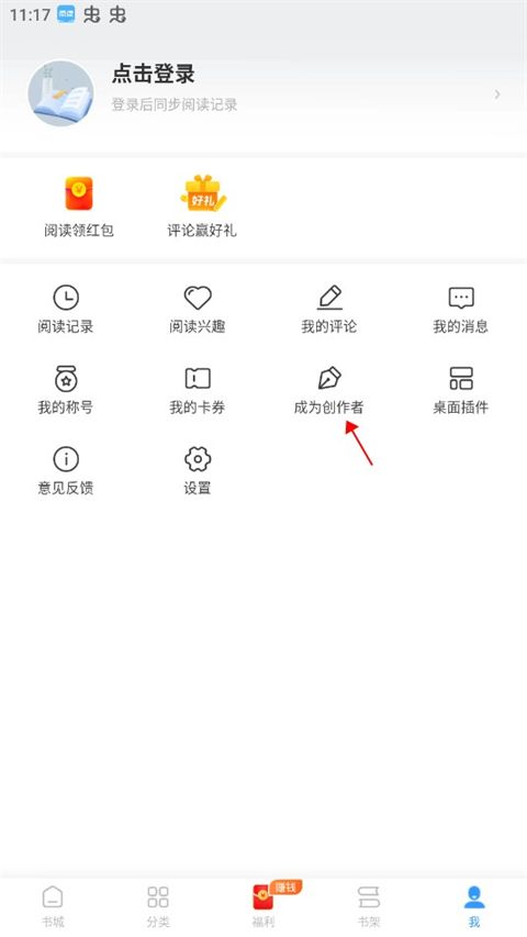 2、在疯读小说极速版免费相关页面中选择“成为作家”;
