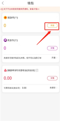 1、打开猎游极速版软件,点击“我的”,然后点击“钱包”。