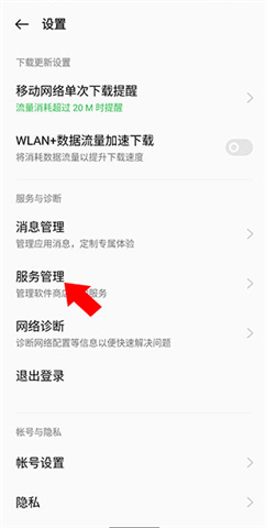 3、找到并点击【服务管理】选项,在服务界面找到有广告推送的服务,点击关闭。