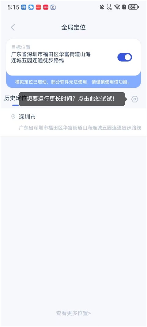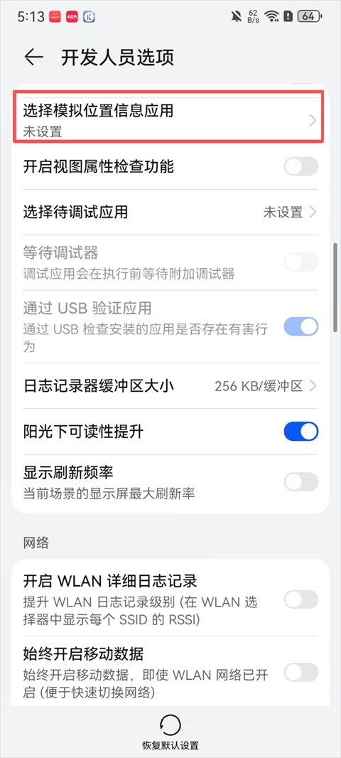 3、点击设置位置,打开手机开发者模式;