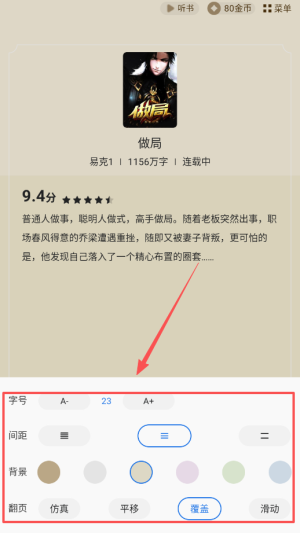4、阅读设置选项允许用户自由调整界面背景和字体样式,打造最符合个人喜好的阅读环境,让您畅享无阻阅读乐趣。