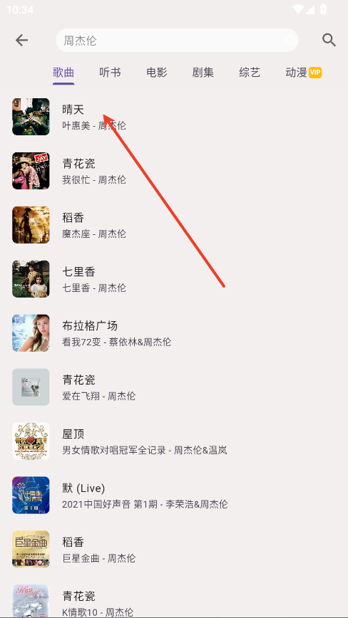 3、在结果列表中点击对应的封面或标题即可开始播放。