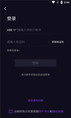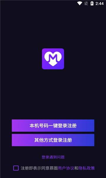 1、安装完成后启动慕圈交友软件,首次进入时会弹出相关协议提示,点击“同意”后即可进入注册页面。