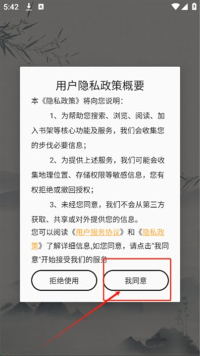 1、启动笔书亭纯净版应用,先同意相关的协议与政策后即可进入首页。