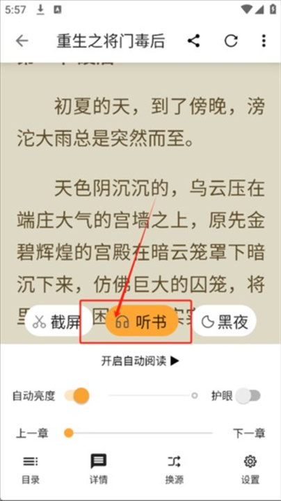 4、找到对应小说后点击进入详情页,即可开始阅读,同时也支持开启听书功能。