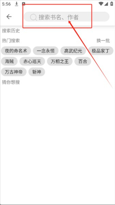 3、在上方的搜索栏中输入书名或作者名称,就能快速查找目标作品。