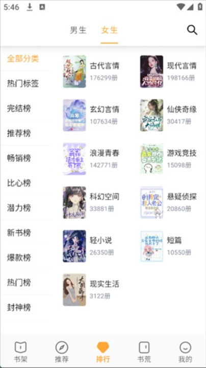 5、切换到排行榜页面,可以查看当前最新以及最受欢迎的小说榜单。