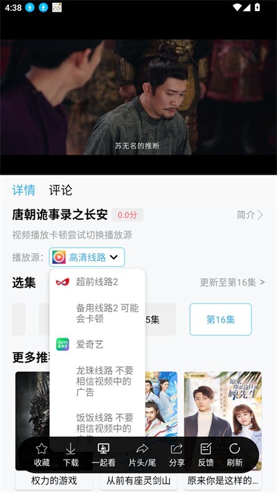 2、提供高清、超清等多种清晰度选项,采用先进的播放技术,保证视频播放流畅,减少卡顿现象。
