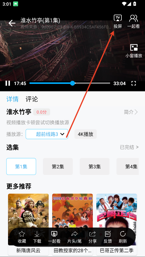 1、进入想要观看的影视剧播放界面。
