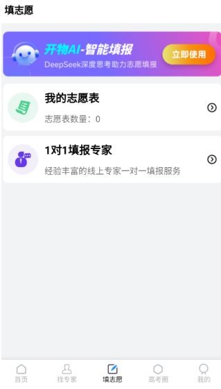 3、点击“填志愿”功能,能够使用我的志愿表,并享受一对一志愿填报指导服务。