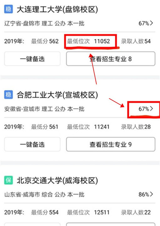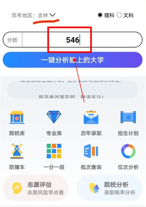 1、输入你的分数,快速找到你能去的大学,综合分析你的志愿,确保每一项都是合理的。