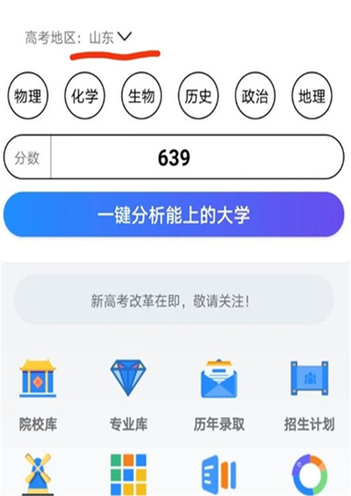 2、在首页填写你的高考所属省份或地区,以便系统更精准地匹配院校资源。
