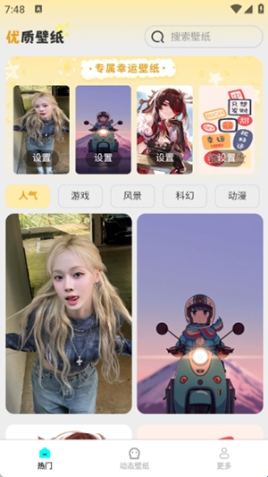 1、在美图壁纸手机版热门栏目中汇集了大量优质壁纸资源,丰富的主题分类可供随意挑选。