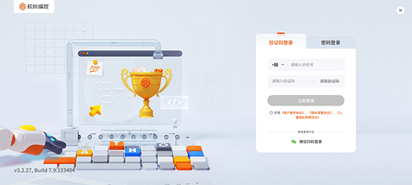1、启动hetao101核桃编程App,选择合适的登录方式进入。