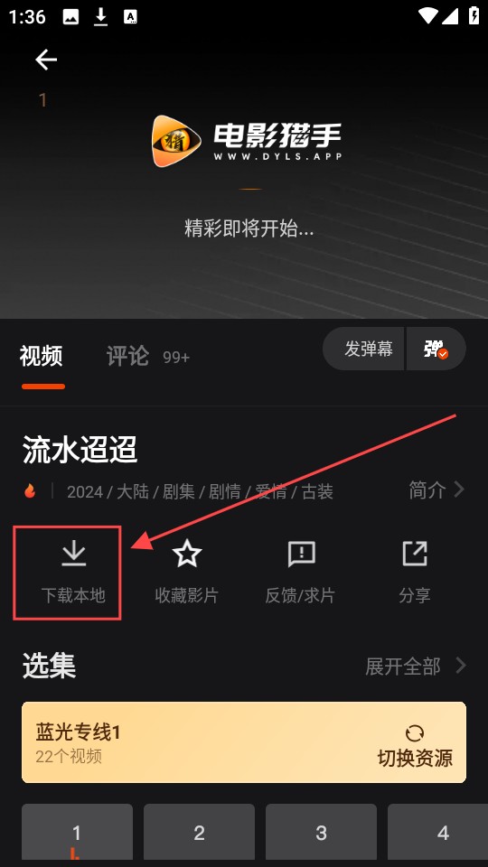 2、然后在播放页面中,找到并点击“下载本地”选项。