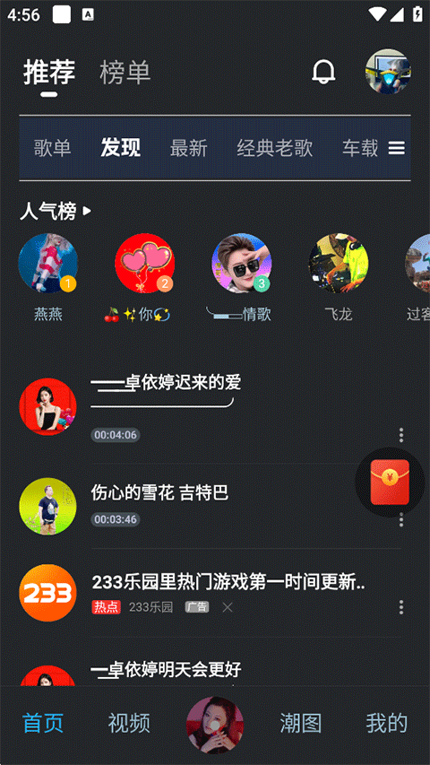 2、多维度分类:按音乐流派、心情、排行榜和语言进行分类,方便用户快速找到想要的歌曲。