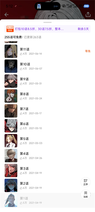 3、进入漫画目录后,你可以查看每一话的更新时间和点赞数量,提前掌握剧情走向。点击任意章节即可开始阅读,并支持顺序或倒序切换,方便按需调整阅读方式。