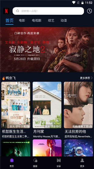 鸭奈飞影视YaNetflix让我们可以轻松在线追剧看电影,不管是国产影视、美剧、日韩剧、还是综艺节目等等都能让我们轻松的观看,加上这里还有着多样化的影视搜索服务,想怎么看最新影视都能在这里找到观看,而且还有着高清和4k蓝光品质的最新影视每日更新,想怎么看都能在这里轻松的追剧观看,最重要的就是在这里看剧不会出现任何的广告弹窗,想怎么看都可以哦,感兴趣的小伙伴欢迎点击下载下来吧。