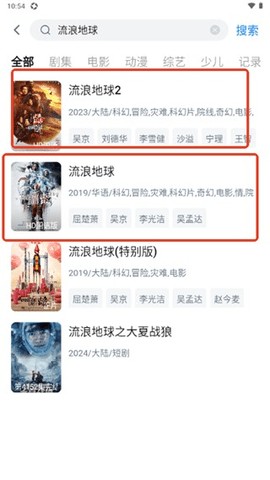 2、输入相关关键词后,点击搜索,就可以在这里看到匹配的影视资源。