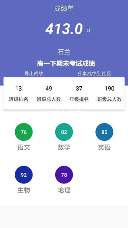 3、操作完成后,就可以查看对应科目的成绩,示例如图所示。