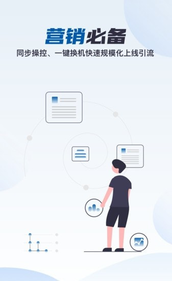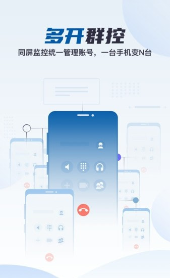 2、一键新机,任意闪现,更安全的账号,一个变成N,群控云电话,同屏同步监控操作。